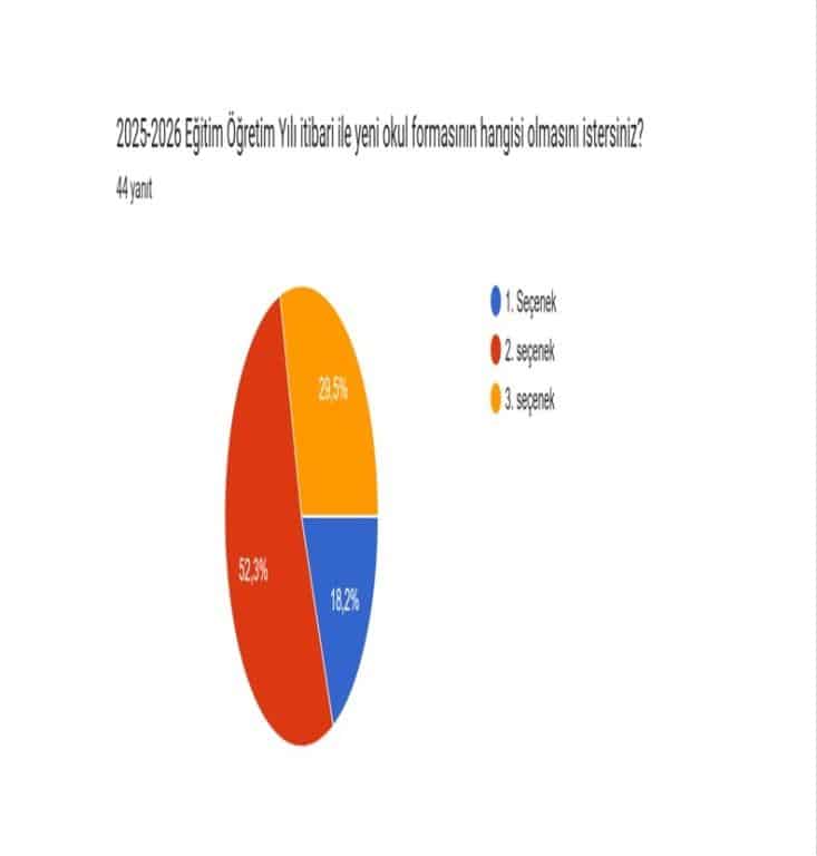 2025-2026 öĞRETİM YILINDA OKUL AİLE BİRLİĞİ GENEL KURULUNDA ALINAN KARAR GEREĞİ ÖĞRETMENLER KURULU TARAFINDAN BELİRLENEN FORMALAR GOOGLE FORM İLE VELİLERİMİZİN OYLAMASINA SUNULMUŞ VE RESİMDE GÖRÜLEN FORMALAR EN ÇOK OYU ALMIŞTIR
